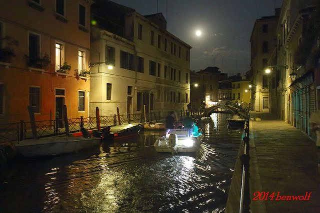 在月光下,搭著小艇遊威尼斯,挺美的。