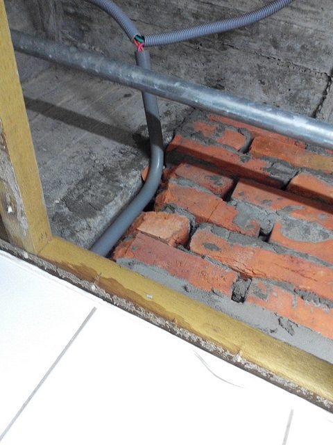泥水師傅們的專業毋庸置疑,瓷磚砌得很工整,要不是地震使得幾塊瓷磚裂開,簡直挑不出毛病;木工師傅也很高明,裸露出來的角材絲毫不因矽酸鈣板脫落而顯出任何疲態,依舊頭好壯壯。